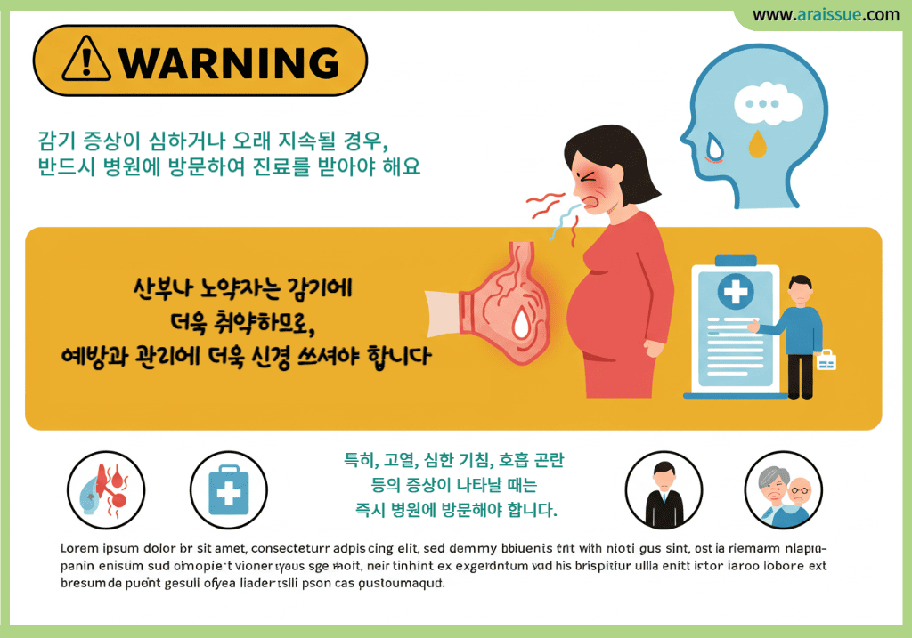 임산부나 노약자는 감기에 더욱 취약하므로, 예방과 관리에 더욱 신경 쓰셔야 합니다.