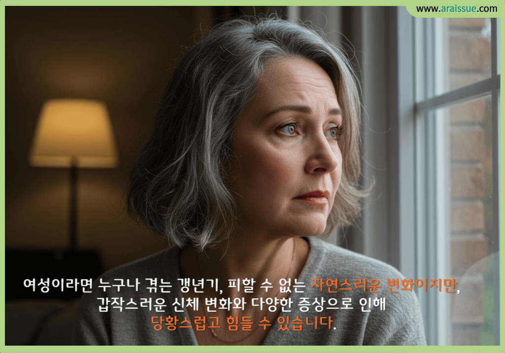 여성이라면 누구나 겪는 갱년기, 피할 수 없는 자연스러운 변화이지만, 갑작스러운 신체 변화와 다양한 증상으로 인해 당황스럽고 힘들 수 있습니다.