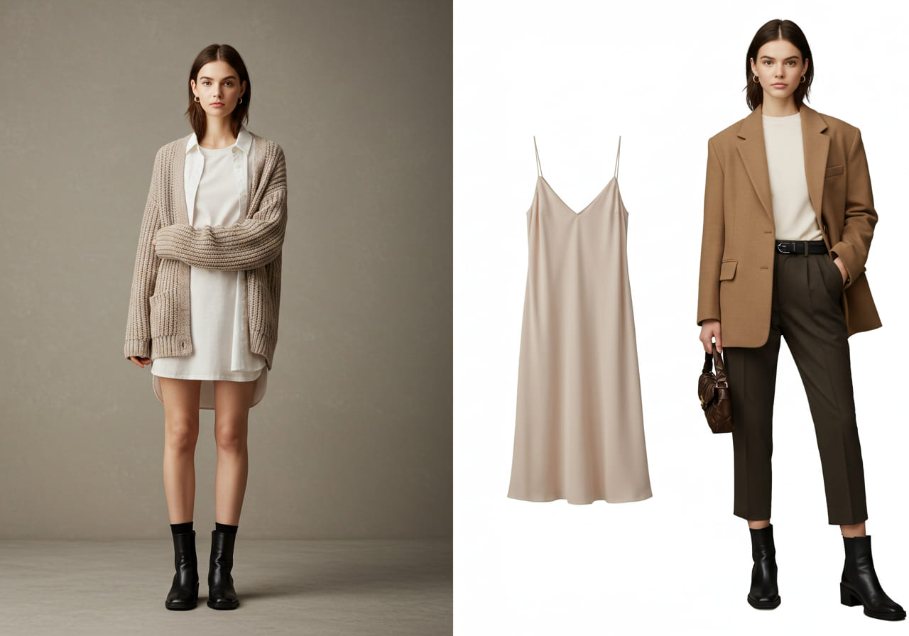 - 슬립 원피스 위에 니트나 가디건을 매치