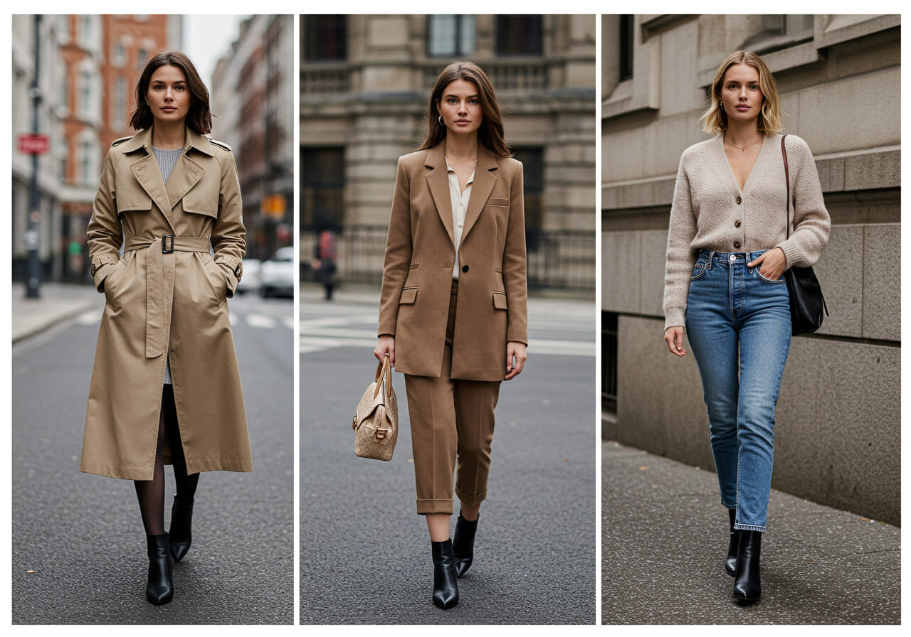 너무 박시한 핏보다는 적당한 핏의 트렌치코트, 크롭 기장의 블레이저를 추천해요.