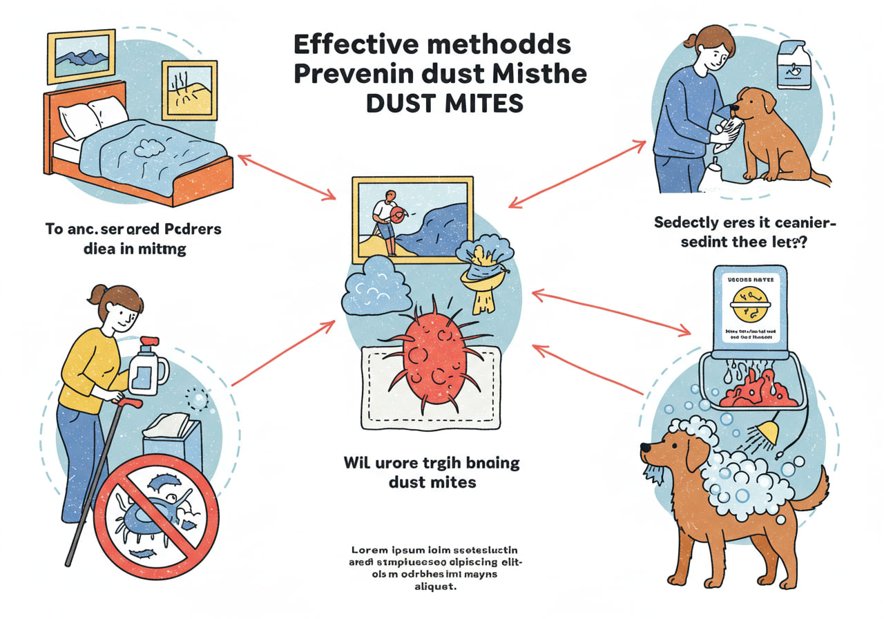 애완동물의 털은 집먼지 진드기의 먹이가 될 수 있습니다. 애완동물을 자주 씻기고 털을 꼼꼼하게 관리해주세요. - 침실 환경 정비